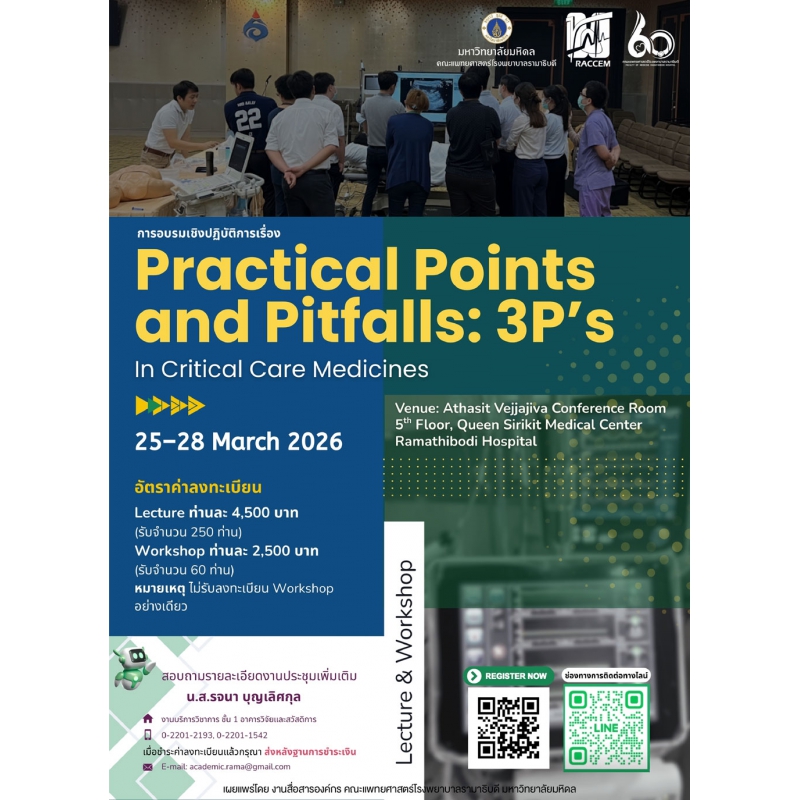 อบรมเชิงปฏิบัติการ “Practical Points and Pitfalls (3Ps) in Critical Care Medicines”