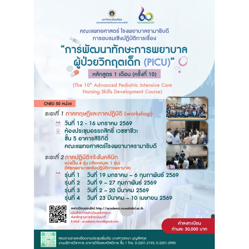 การพัฒนาทักษะการพยาบาลผู้ป่วยวิกฤตเด็ก (PICU) หลักสูตร 1 เดือน ครั้งที่ 10